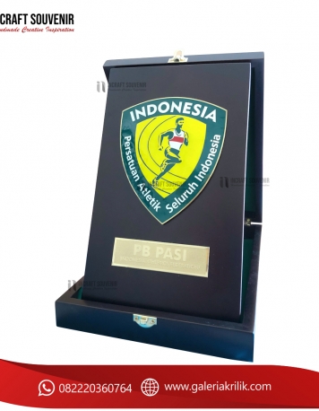 Plakat kayu merupakan produk plakat yang eksklusif dan elegan. Plakat kayu dengan sentuhan kombinasi plat kuningan menjadikan plakat kayu banyak sekali diminati baik instansi pemerintah, BUMN, Universitas dan juga perusahaan – perusahaan swasta. Produk plakat kayu ini terkenal dengan nilai kemewahanya dengan kombinasi kuningan croom emas dan tentunya dilengkapi dengan kotak bludru / batik menambah nilai eksklusufitas plakat kayuini.