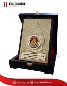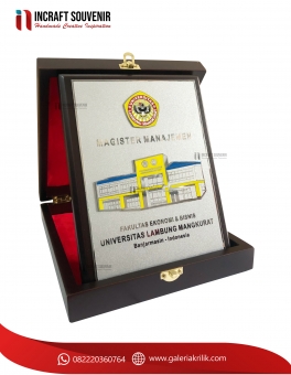 Plakat kayu merupakan produk plakat yang eksklusif dan elegan. Plakat kayu dengan sentuhan kombinasi plat kuningan menjadikan plakat kayu banyak sekali diminati baik instansi pemerintah, BUMN, Universitas dan juga perusahaan – perusahaan swasta. Produk plakat kayu ini terkenal dengan nilai kemewahanya dengan kombinasi kuningan