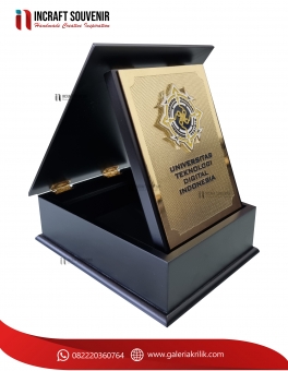 Plakat kayu merupakan produk plakat yang eksklusif dan elegan. Plakat kayu dengan sentuhan kombinasi plat kuningan menjadikan plakat kayu banyak sekali diminati baik instansi pemerintah, BUMN, Universitas dan juga perusahaan – perusahaan swasta. Produk plakat kayu ini terkenal dengan nilai kemewahanya dengan kombinasi kuningan